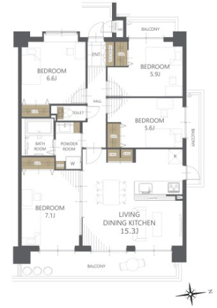 間取内容 | LDK15.3帖 洋室7.1帖 洋室6.6帖 洋室5.9帖 洋室5.6帖 | ||