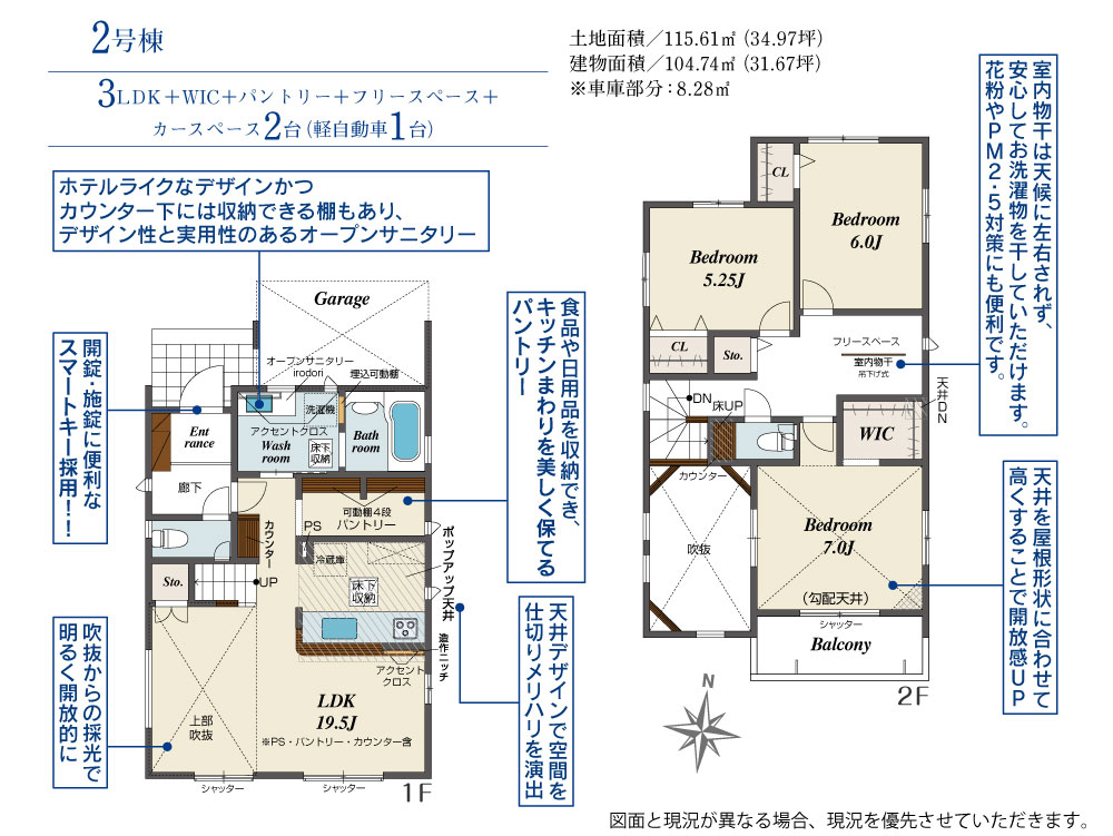 間取内容 | LDK19.5帖 1階 洋室7帖 2階 洋室6帖 2階 洋室5.25帖 2階 | ||