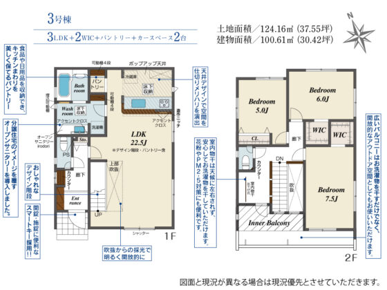間取内容 | LDK22.5帖 1階 和室7.5帖 2階 洋室6帖 2階 洋室5帖 2階 | ||