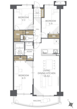 間取内容 | LDK16.6帖 洋室6.7帖 洋室5.3帖 洋室5.1帖 | ||