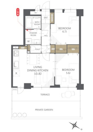 間取内容 | LDK10.8帖 洋室6.7帖 洋室5.6帖 | ||
