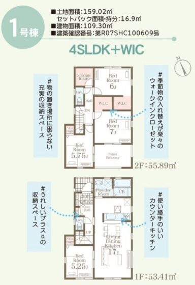 敷地全体面積 | 159.02m²(48.1坪) | 延べ床面積 | |