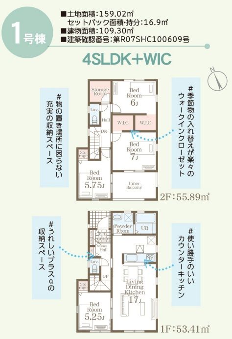 間取内容 | LDK17帖 1階 洋室5.25帖 1階 洋室7帖 2階 洋室6帖 2階 洋室5.75帖 2階 | ||