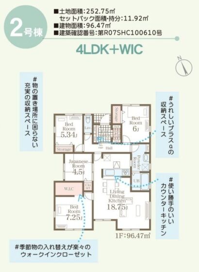 敷地全体面積 252.75m²(76.45坪) 延べ床面積