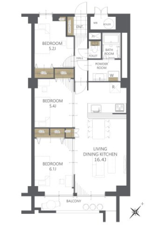 間取内容 | LDK16.4帖 洋室6.1帖 洋室5.4帖 洋室5.2帖 | ||
