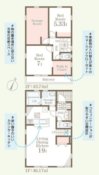 間取内容 | LDK19帖 1階 洋室7帖 2階 洋室5.3帖 2階 | ||