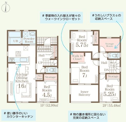 | 間取内容 | LDK16帖 1階 洋室4.5帖 1階 洋室7帖 2階 洋室5.75帖 2階 洋室5.25帖 2階 | ||