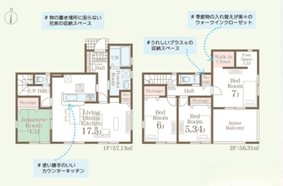 | 間取内容 | LDK17.5帖 1階 和室4.5帖 1階 洋室7帖 2階 洋室6帖 2階 洋室5.34帖 2階 | ||