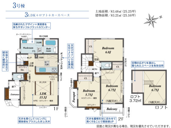 | 間取内容 | LDK15.5帖 1階 洋室6.75帖 2階 洋室6帖 2階 洋室5.75帖 2階 ロフトあり |