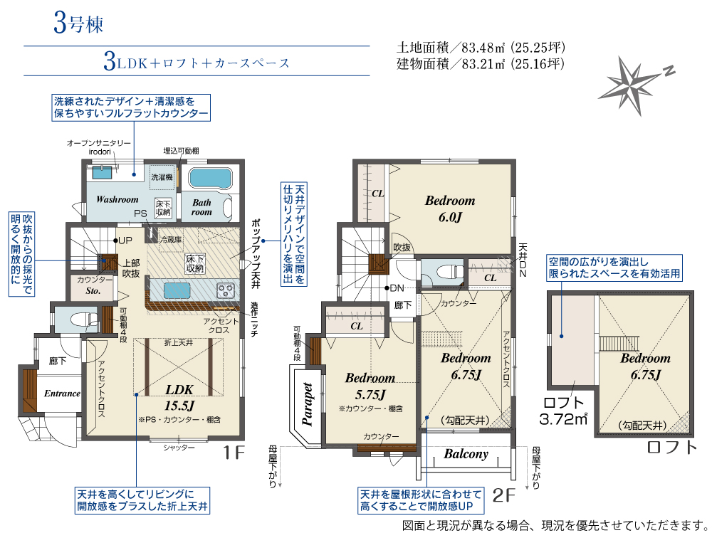 | 土地面積 | 83.48m²(25.25坪) | 土地面積計測方式 | |
