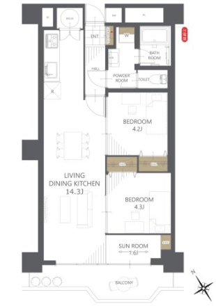 | 間取内容 | LDK14.3帖 洋室4.3帖 洋室4.2帖 | ||