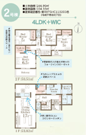 | 間取内容 | LDK17帖 1階 洋室6.5帖 2階 洋室5帖 2階 洋室5帖 2階 洋室4.5帖 2階 | ||