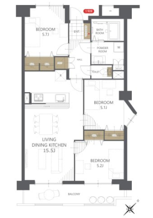 間取内容 LDK15.5帖 洋室5.7帖 洋室5.2帖 洋室5.1帖
