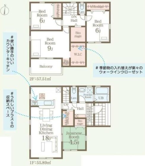 | 間取内容 | LDK18帖 1階 和室4.5帖 1階 洋室9帖 2階 洋室6帖 2階 洋室6帖 2階 | ||