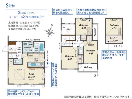 間取内容 LDK15.37帖 1階 洋室6帖 2階 洋室5帖 2階 洋室4.5帖 2階