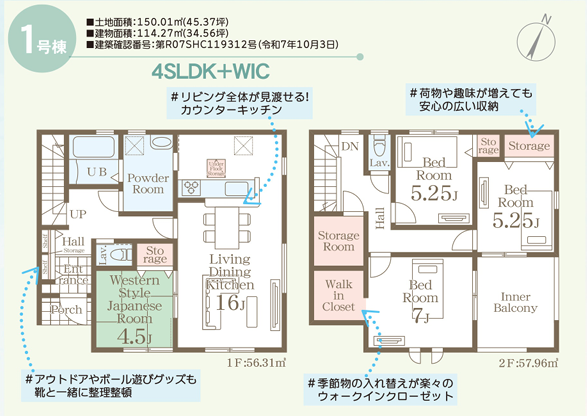敷地全体面積 150.01m²(45.37坪) 延べ床面積