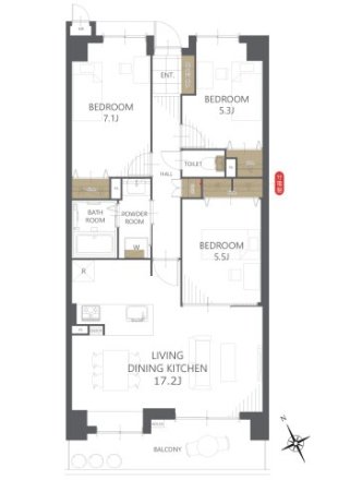 | 間取内容 | LDK17.2帖 洋室7.1帖 洋室5.5帖 洋室5.3帖 | ||