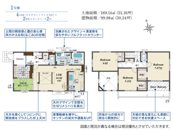| 敷地全体面積 | 169.14m²(51.16坪) | 延べ床面積 | |