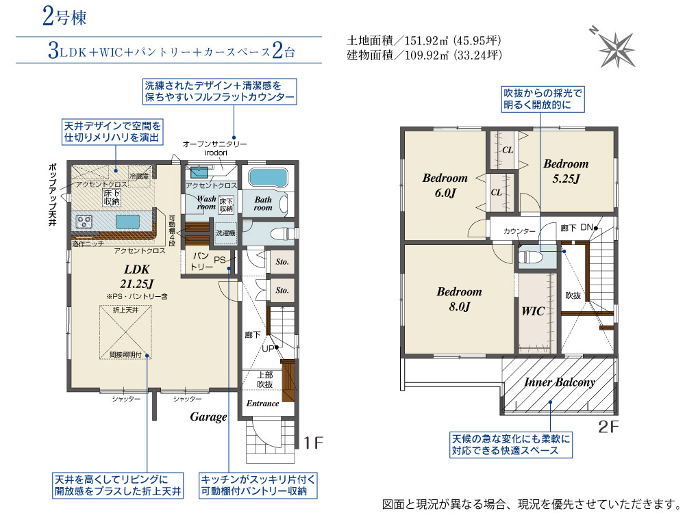| 面積 | 109.92m²(33.25坪) | 計測方式 | |