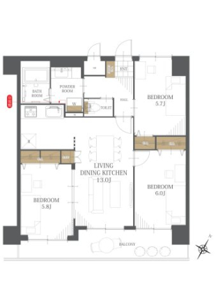 | 間取内容 | LDK13帖 洋室6帖 洋室5.8帖 洋室5.7帖 | ||