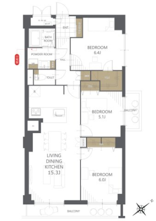 | 間取内容 | LDK15.3帖 洋室6.4帖 洋室6帖 洋室5.1帖 | ||