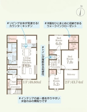 | 間取内容 | LDK18帖 1階 洋室7帖 2階 洋室6帖 2階 洋室5.2帖 2階 | ||
