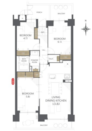 | 間取内容 | LDK13.8帖 洋室6.1帖 洋室5.8帖 洋室4.7帖 | ||