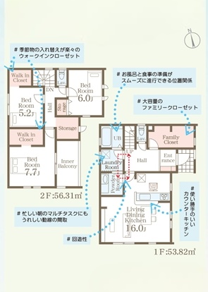 | 間取内容 | LDK16帖 1階 洋室7.7帖 2階 洋室6帖 2階 洋室5.2帖 2階 | ||