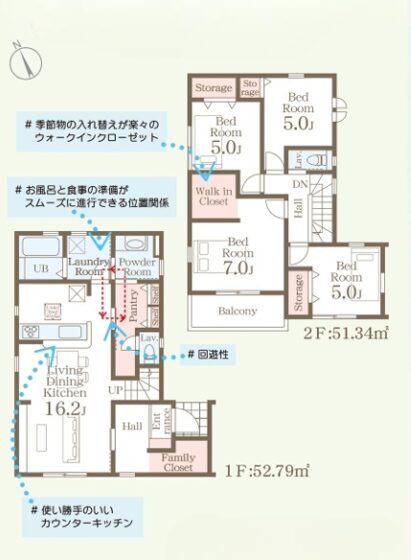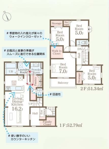 | 間取内容 | LDK16.2帖 1階 洋室7帖 2階 洋室5帖 2階 洋室5帖 2階 洋室5帖 2階 | ||
