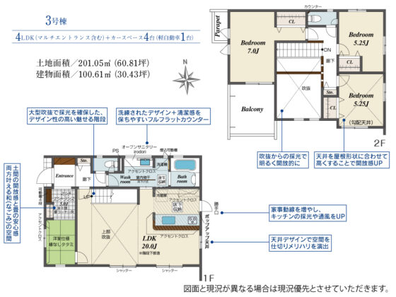 | 敷地全体面積 | 201.05m²(60.81坪) | 延べ床面積 | |