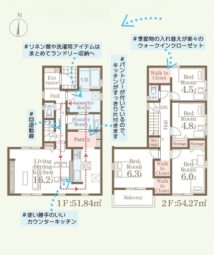 | 間取内容 | LDK16.2帖 1階 洋室6.3帖 2階 洋室6帖 2階 洋室4.8帖 2階 洋室4.5帖 2階 | ||