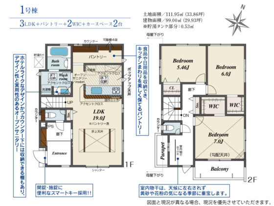 | 間取内容 | LDK19帖 1階 洋室7帖 2階 洋室6帖 2階 洋室5.46帖 2階 | ||