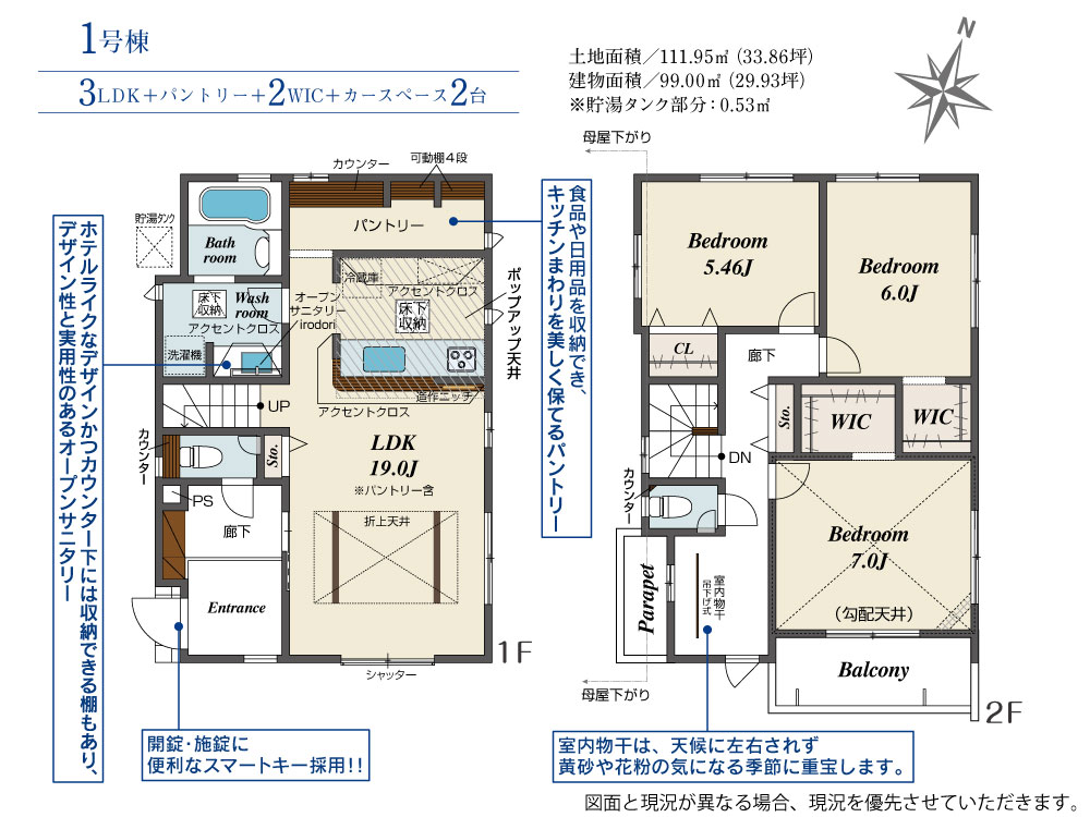 | 敷地全体面積 | 111.95m²(33.86坪) | 延べ床面積 | |