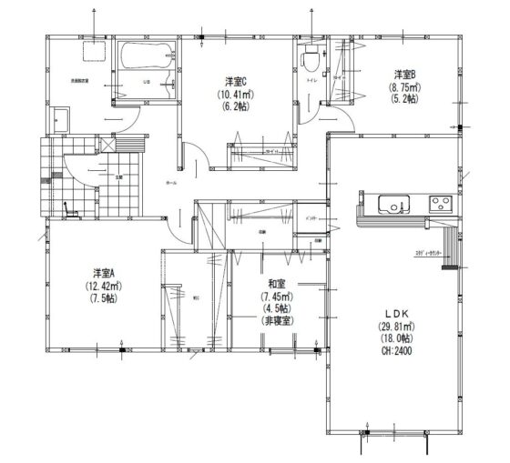 | 間取内容 | LDK18帖 1階 洋室7.5帖 1階 洋室6.2帖 1階 洋室5.2帖 1階 和室4.5帖 1階 | ||