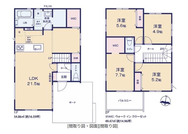 | 間取内容 | LDK21.5帖 1階 洋室7.7帖 2階 洋室5.6帖 2階 洋室5.2帖 2階 洋室4.9帖 2階 | ||